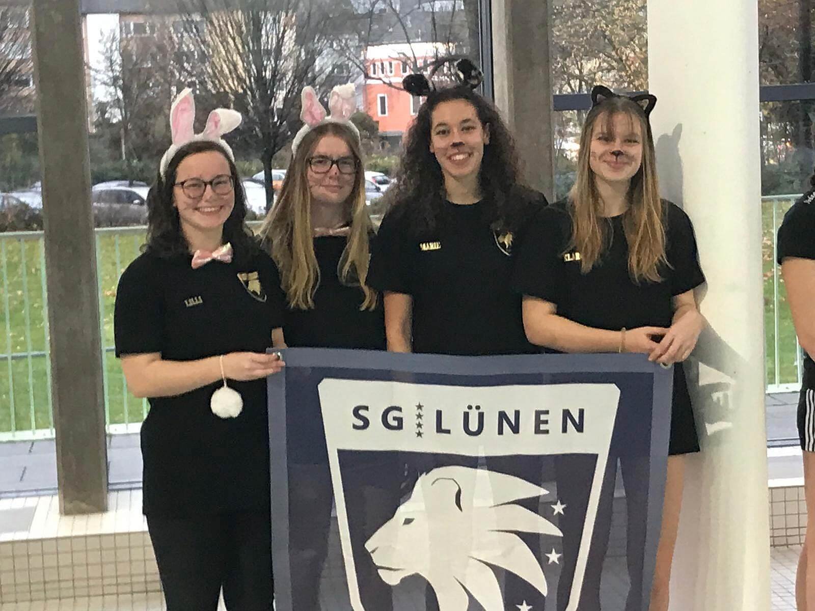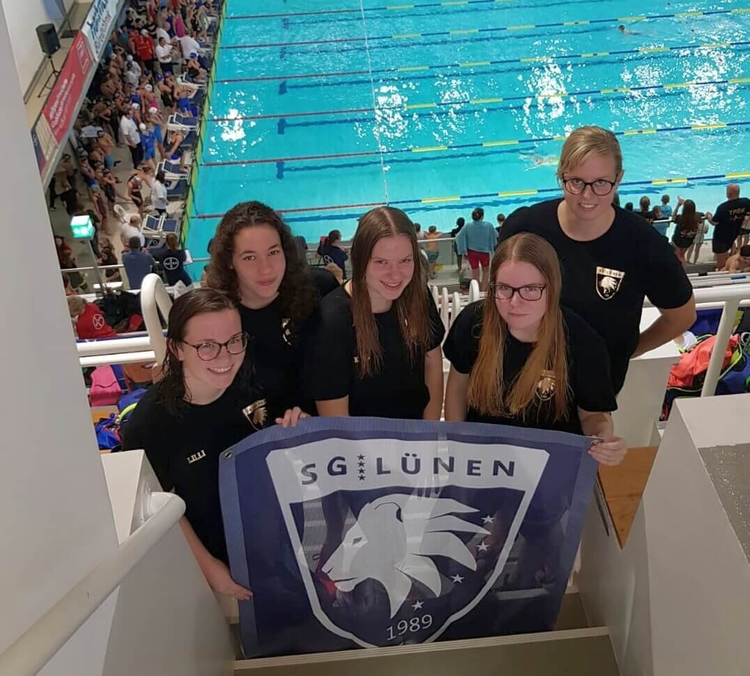 Für die Jugend A weiblich gingen Lilli Baune, Marie Bloehs, Klara Michelt (alle 2001) und Astrid Croissier (2002) an den Start. Zu Beginn der Wettkämpfe waren sie nur als 8.-schnellste Mannschaft gerade so in das NRW Finale gerutscht. Dennoch: Top motiviert und mit hervorragenden Leistungen schafften es die vier Schülerinnen sich um satte 34 Sekunden gegenüber der Vorrunde verbessern. Dazu steuerte unter anderem auch Lilli Baune bei: Mit einer 1:08,9 über die 100 Meter Schmetterling verbesserte sie sich fünf Sekunden gegenüber dem Vorlauf und eine Sekunde gegenüber ihrer persönlichen Bestzeit. Damit ließen sie am Ende des Wettkampfes auch das Damenteam des SV Rheine und des Duisburger ST hinter sich, was den 6. Platz für die SG Lünen bedeutete.