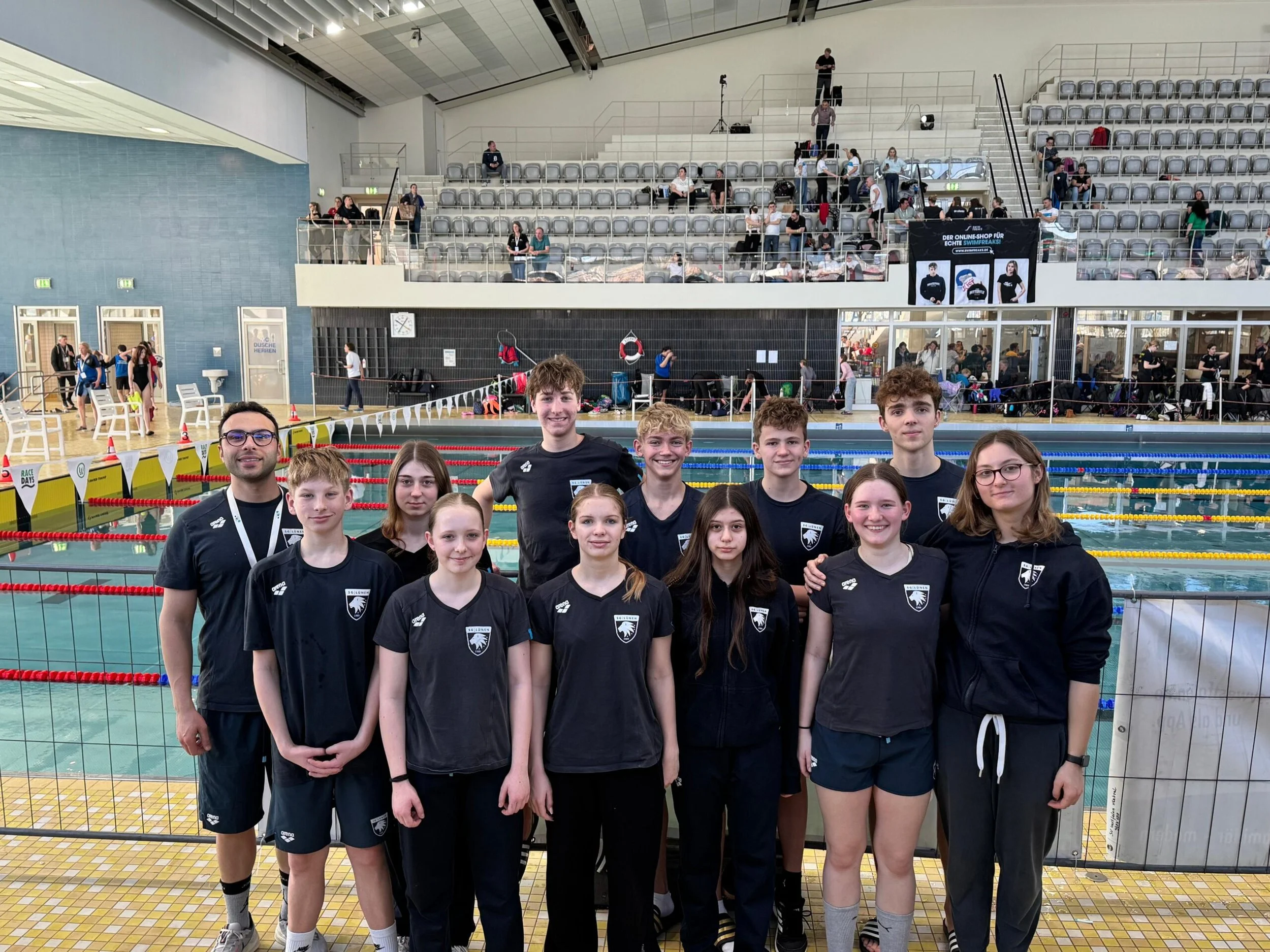 Trotz der starken Konkurrenz konnten viele auch mit persönlichen Bestzeiten überzeugen. Bei 55 Prozent der Starts wurden neue persönliche Rekorde aufgestellt – eine gute Quote, insbesondere vor dem Hintergrund, dass bereits am vergangenen Wochenende zahlreiche Bestzeiten geschwommen wurden.Besonders hervorzuheben sind hierbei Nikita Bashtovy (Jahrgang 2009), Louisa Färber, Adelio Fischer, Justus Garn (Jahrgang 2010), Kaja Malou Grunert (Jahrgang 2012), Tacmin Kocaman (Jahrgang 2011), Matthis Richter (Jahrgang 2009) und Carlotta Schulze (Jahrgang 2013), die bei nahezu jedem ihrer Starts eine neue persönliche Bestzeit erzielten.Trainer Momo Servatjoo war mit den Leistungen sehr zufrieden. Denn neben den Bestzeiten konnten sich einige auch noch für die anstehenden NRW-Jahrgangsmeisterschaften qualifizieren. Nun gehen für alle - besonders für Lara Vogt und Philipp Hilke - die Vorbereitungen auf die anstehenden Meisterschaften los.