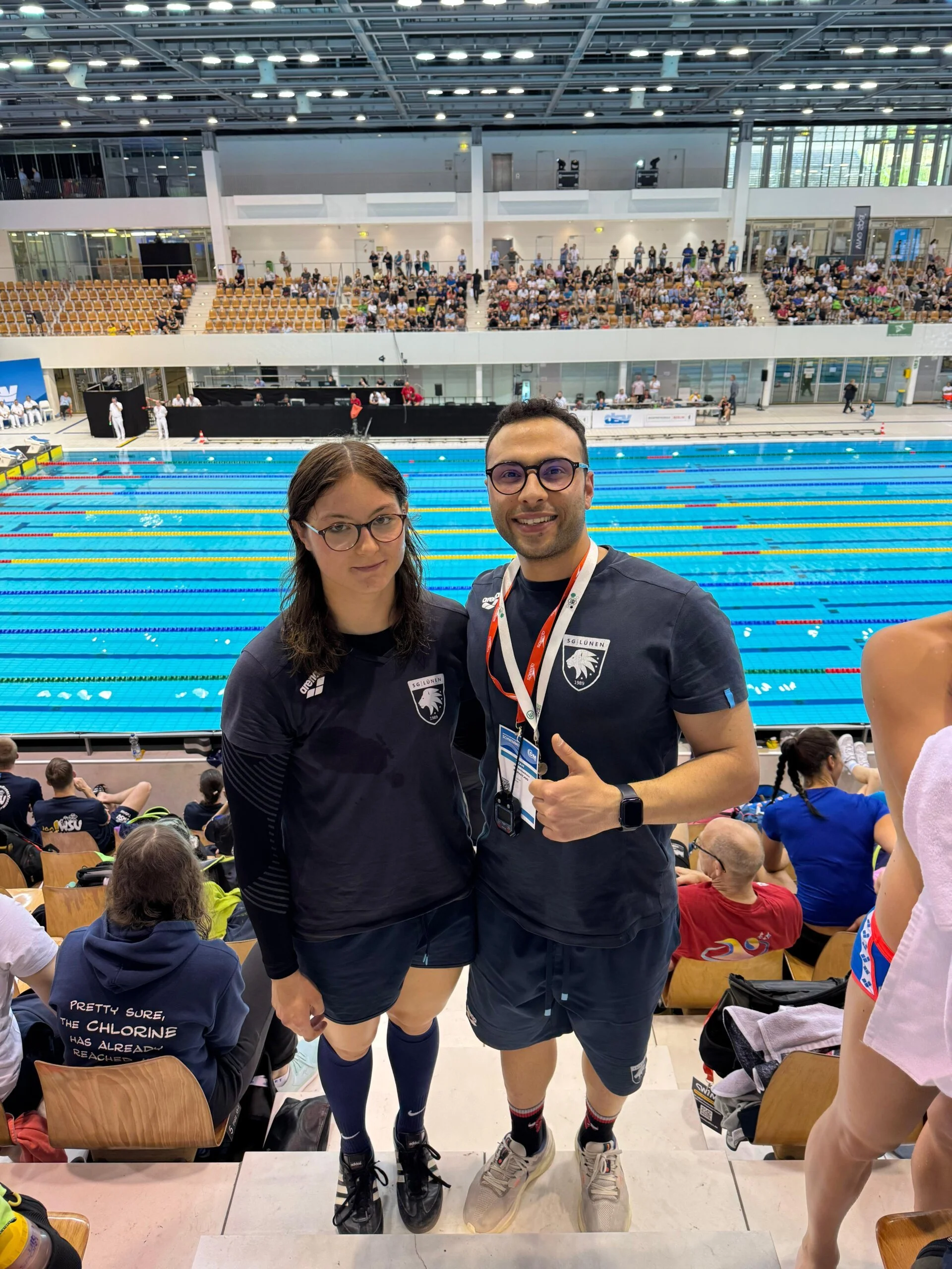 Dabei war die Aufregung groß: Zum ersten Mal schwamm Lara neben einigen der bekanntesten Schwimmerinnen Deutschlands. Der erste Start war direkt am Donnerstag (1. Mai) über die 100 Meter Rücken. Hier blieb sie leider knapp zwei Sekunden über ihrer persönlichen Bestzeit. Am Samstag folgte das Rennen über 50 Meter Rücken – mit einer Zeit nur knapp über ihrer persönlichen Bestleistung.Gemeinsam mit ihrem Trainer Momo Servatjoo, der sie nach Berlin begleitete, konnte Lara dennoch viel aus dem Wettkampf mitnehmen. Beide sehen den Start bei den Meisterschaften als wichtige Erfahrung an. Denn schon in der kommenden Woche steht für Lara der nächste Wettkampf an – dieses Mal in Bochum. Dort hat sie die letzte Chance, sich für die Deutschen Jahrgangsmeisterschaften in fünf Wochen zu vorzubereiten. Geplant sind dann Starts über die 50, 100 und 200 Meter Rücken.