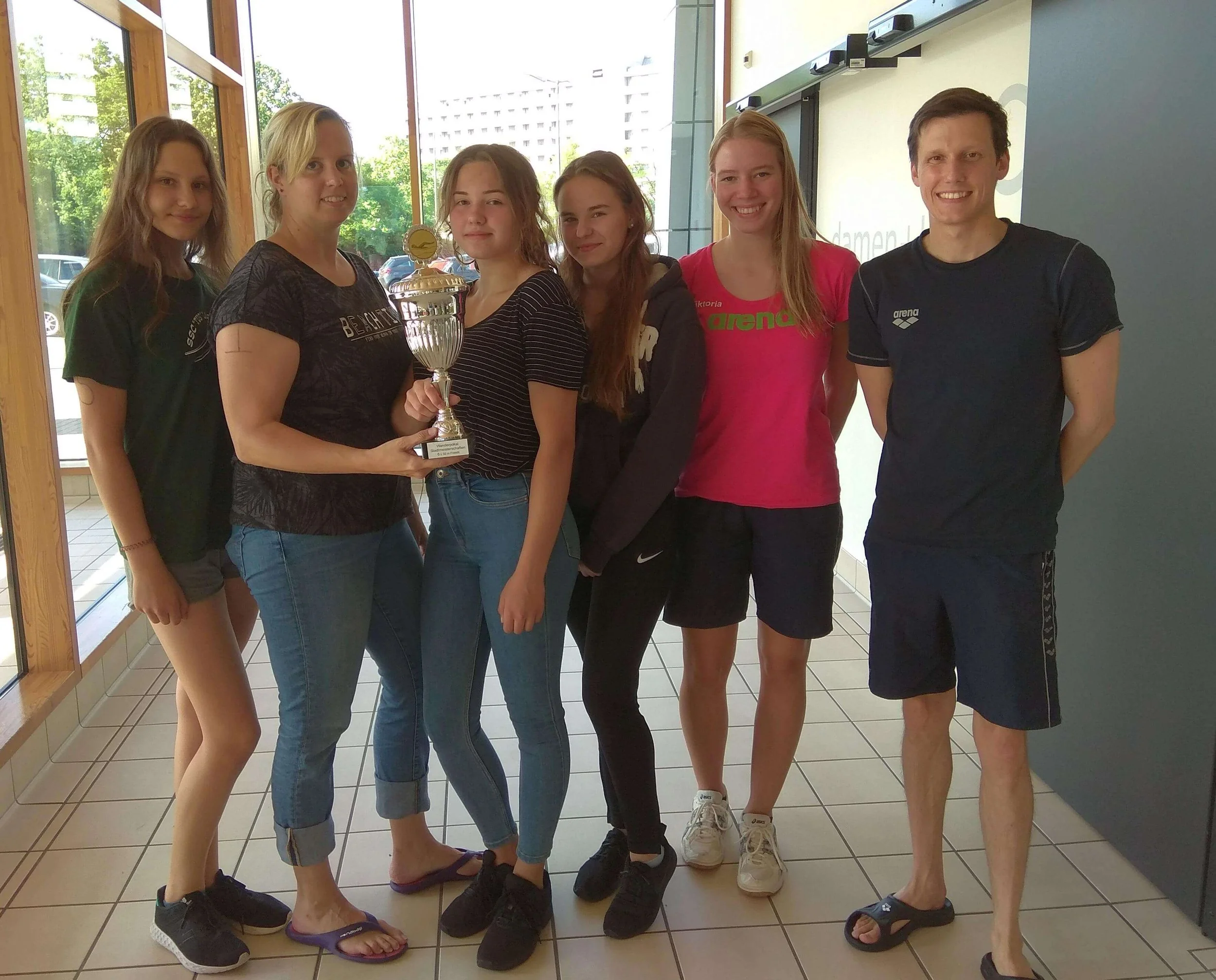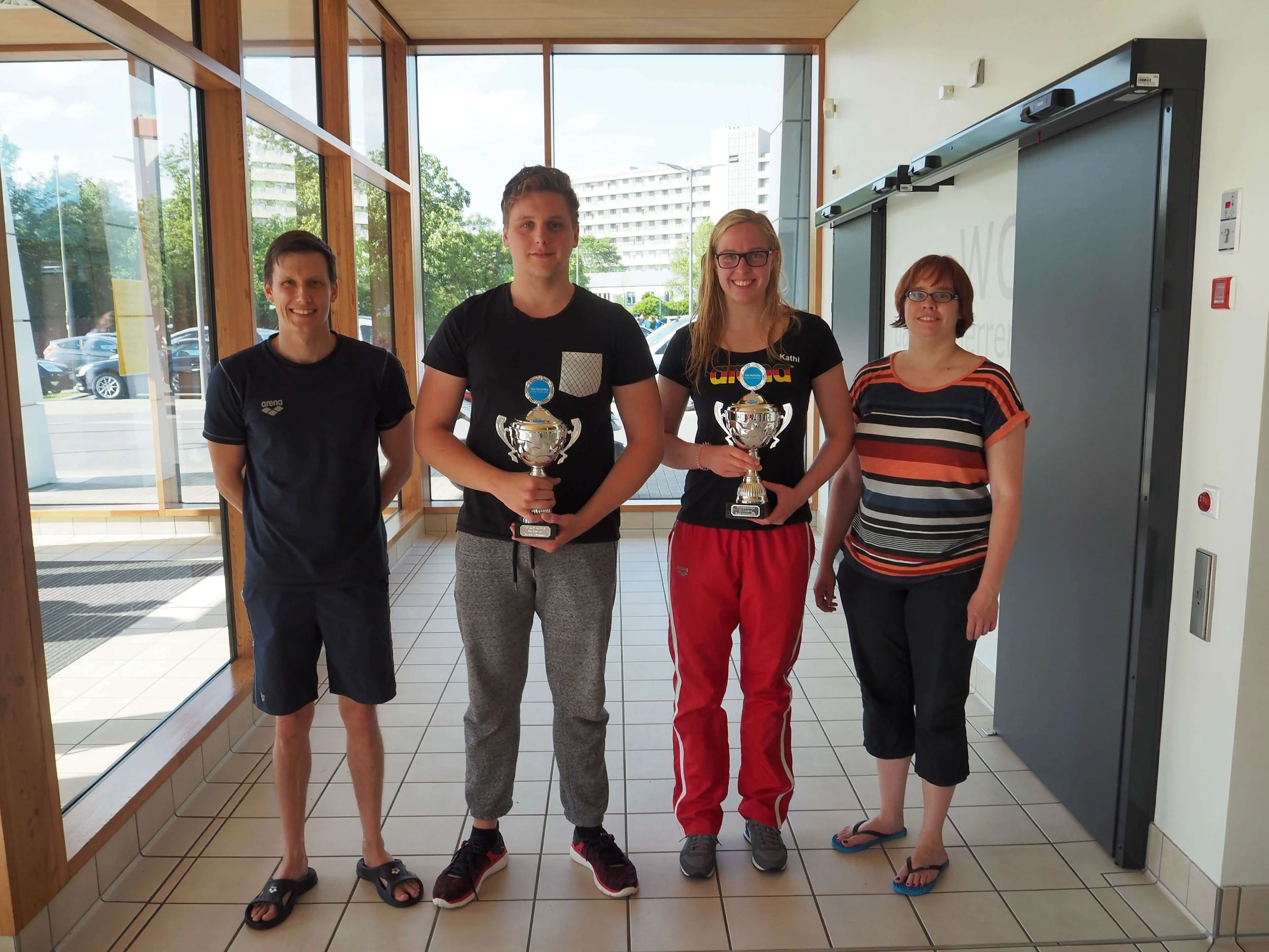 Aber nicht nur bei den Einzelstarts ist es am Wochenende spannend geworden. Wie in jedem Jahr waren vor allem die Staffeln am Ende des Tages das Highlight des ganzen Wettkampfs. Die Rivalitäten der Vereine, die jedes Jahr nur bei den Stadtmeisterschaften aufkommen, zeigten sich dabei deutlich. Denn wer diese Staffeln gewinnt, ist der heimliche Sieger des ganzen Wettkampfes – da zählt dann kaum, wer die Mannschaftswertungen gewinnt. Daher ging es auch ganz schön heiß her. Alle, der sich noch im Hallenbad befand, kam zum Wettkampfbecken und feuerte ihre Mannschaft lautstark an.Die Herren maßen ihre Kräfte in der 10x50 Meter Freistilstaffel. Was noch als Kopf an Kopf Rennen startete, entpuppte sich sehr bald als Dominanz des SVL, der die Staffel auch schon im letzten Jahr gewann. Die sehr junge TUS Mannschaft konnte so gegen die erfahrenen Schwimmer des SVL nichts ausrichtigen. Letztendlich über acht Sekunden vor dem TUS und dem drittplatzierten SCC schlugen Benedikt Oehl, Robin Van der Voort, Felix Reichmann, Sascha Kaczmarek, Martin Glajcar, Julian Feldmann, Max Harder, Lennard-Alexander Raabe, Daniel Pisalski und ChristianFahrenholz an. Bei der 6x50 Meter Staffel der Frauen siegte im letzten Jahr noch der SCC in einer knappen Entscheidung auf den letzten Metern. Doch dieses Jahr mussten sie sich – auch bedingt durch einige Ausfälle – dem TUS geschlagen geben. Die TUS Staffel in der Besetzung Stefanie Tiedtke, Cora Engel, Marcella Rose, Alina Schulz, Viktoria Michelt und der Schlussschwimmerin Doreen Schulz schlugen somit ganze fünf Sekunden vor den Schwimmerinnen des SCC an. Da konnte auch Ausnahmetalent Katharina Stember, die nächste Woche bei den deutschen Meisterschaften unter anderem über dies 50 Meter Freistil Distanz starten wird, als letzte Schwimmerin des SCC nicht mehr viel ausrichten. Den dritten Platz sicherte sich die zweite Mannschaft des TUS.