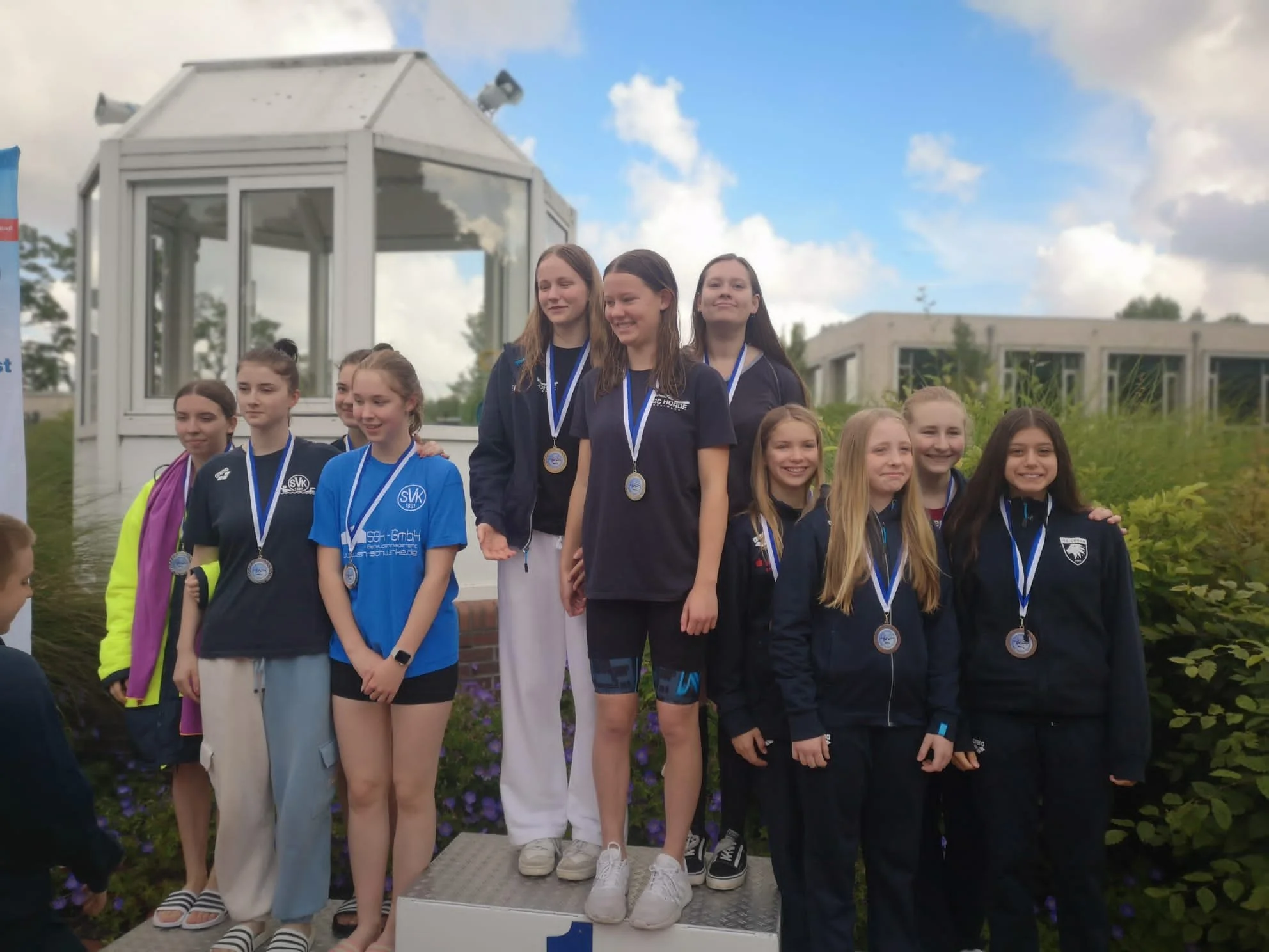 Highlight für die Schwimmerinnen und Schwimmer waren auch die Staffeln. Insgesamt 8-mal ging die SG Lünen mit Staffeln an den Start. Die 4x100 Meter Freistilstaffel mit Tacmin Kocaman, Emma Rottmann, Anni Schulte und Hannah Sophie Grunert (alle Jahrgang 2011 oder 2012) schaffte es bei starker Konkurrenz sogar auf den dritten Platz.